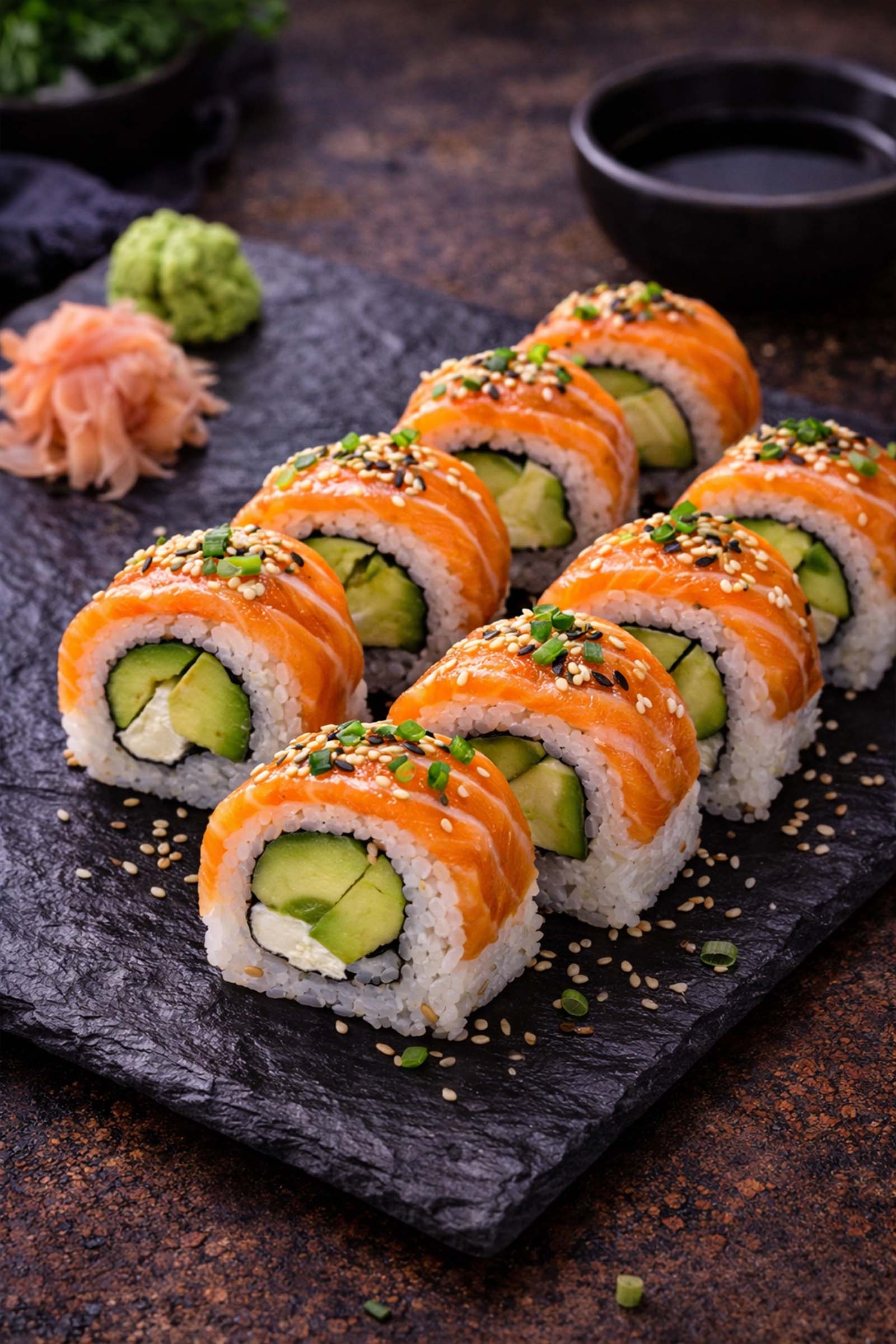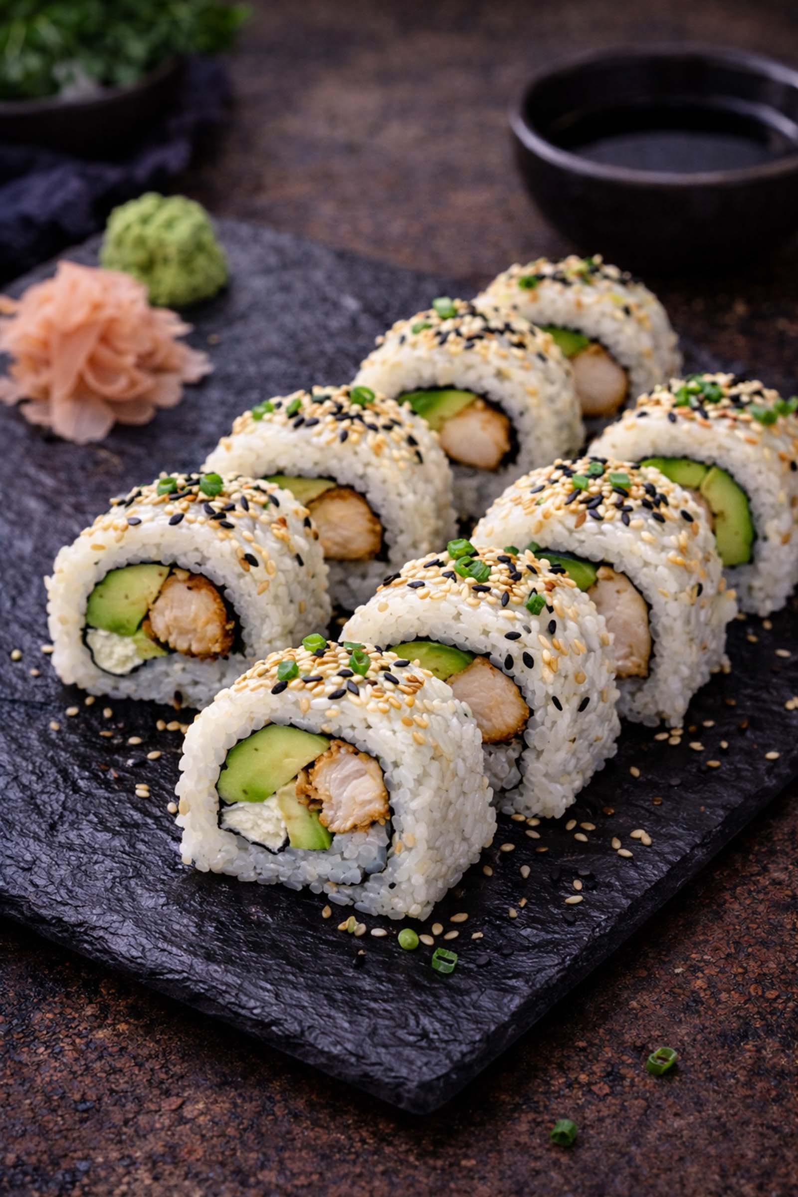 Avocado / Ebi Tempura / Lachs / Sesam