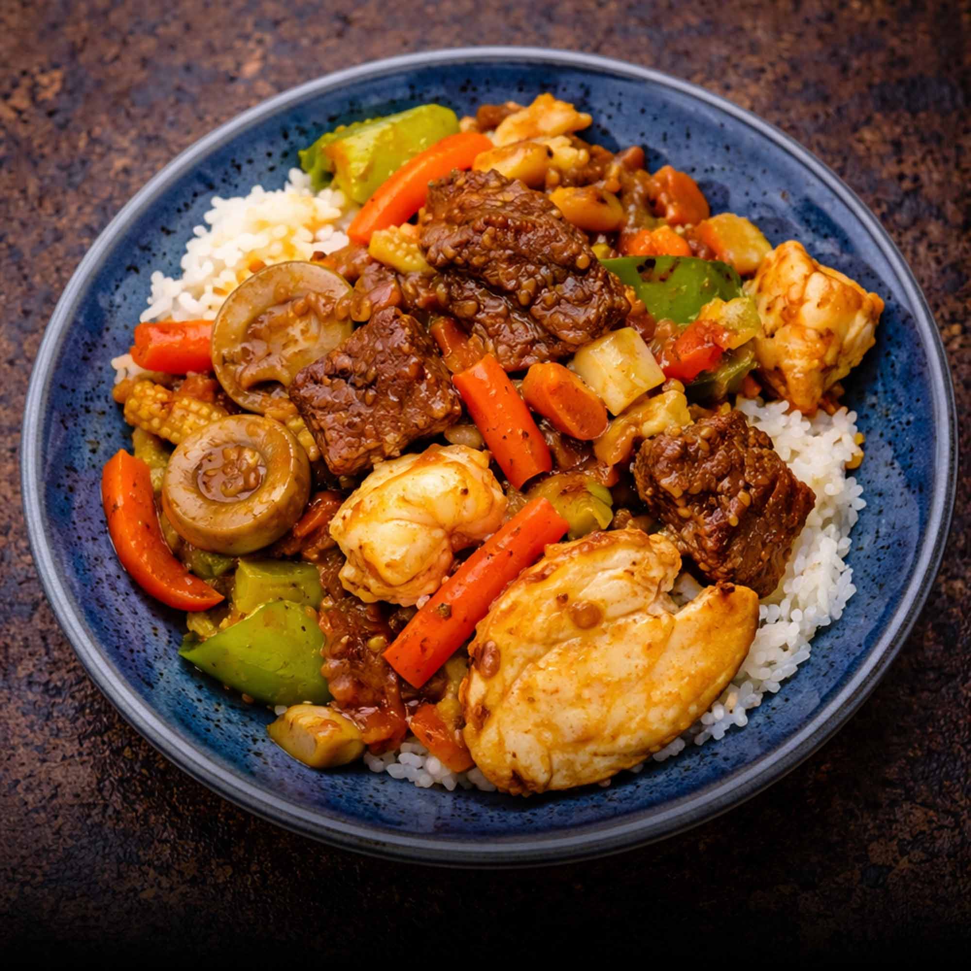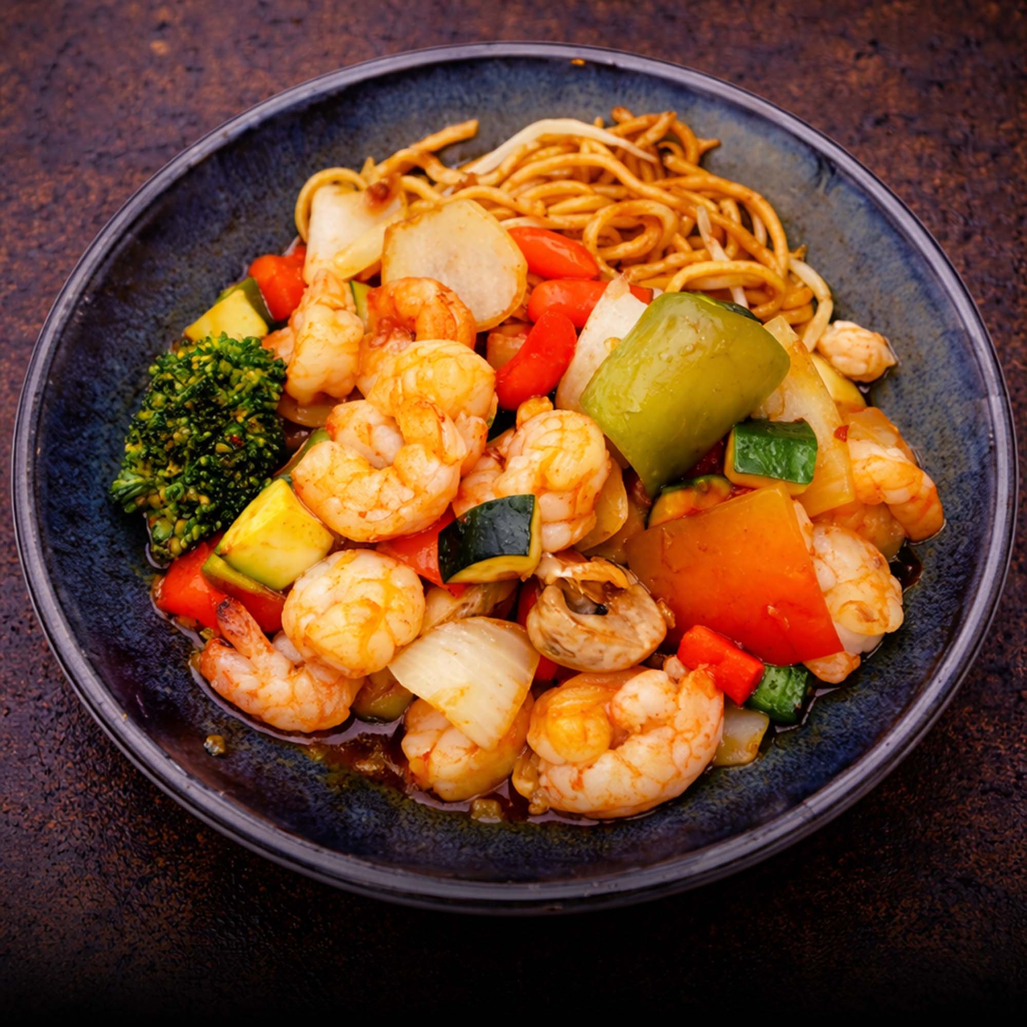 Reis oder Nudeln mit Wokgericht nach Wahl